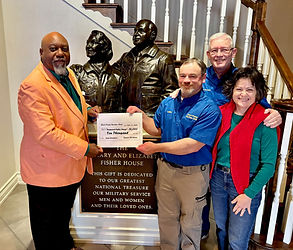 President Larry Van Wagner presents a check for $10,000 to Mac McDonald, Program Assistant for the Fisher House at the VA Medical Center, while club members Bruce & Gina Brooks look on.